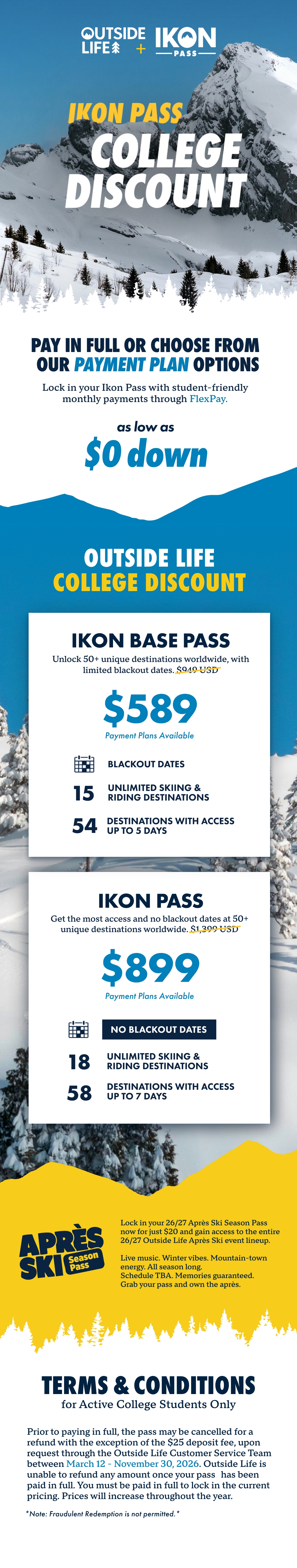 When you create an account on the Outside Life website you provide us with your name, email, address, phone number, gender, graduation date, height/shoe size for rental purposes and birth date. You will also be able to add a picture of yourself.